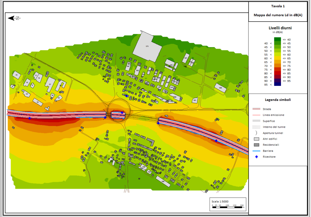 Thanks to the use of software such as SoundPLAN®, it can produce noise prediction models to assess the effects that the same may produce in a more or less vast field, both for existing works and for works not yet built.