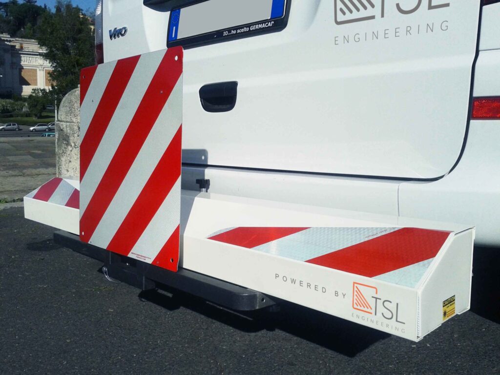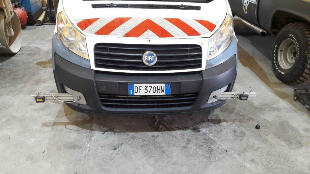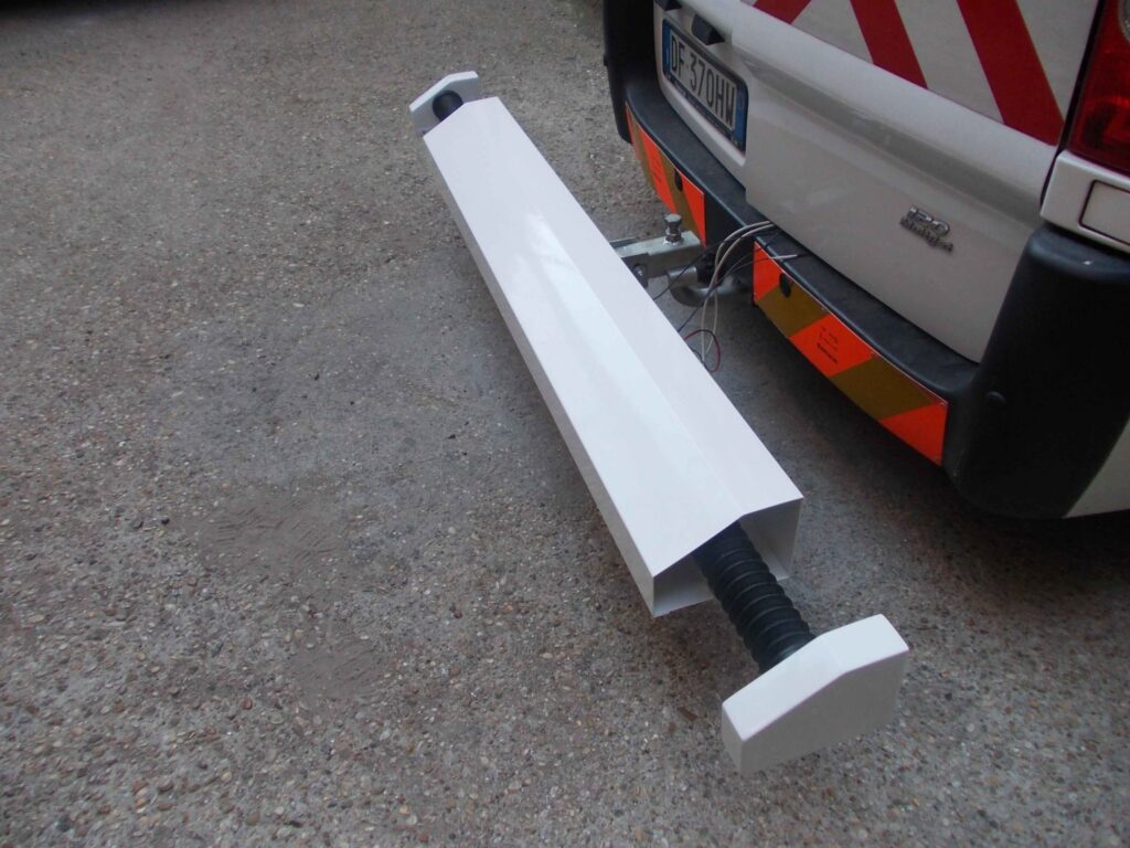 - Barra profilometrica longitudinale: è in grado di rilevare l’IRI e l’MPD. Il sistema può essere montato all’interno del paraurti del veicolo per proteggerlo da urti ed agenti atmosferici esterni durante lo spostamento. L’elemento di novità nella modalità di rilievo dell’IRI, risiede nei due profilometri inerziali indipendenti posti in asse con le ruote anteriori del veicolo, in grado di ottimizzare il processo di rilievo del profilo